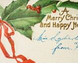 Merry Christmas Happy New Year 1910s Embossed Holly Business Card Size PCBG6B