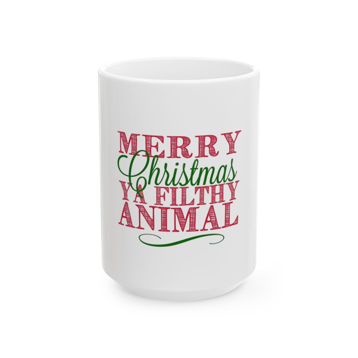 Merry Christmas Ya Filthy Animal Mug - Fun Holiday Ceramic Coffee Cup Xmas Gift