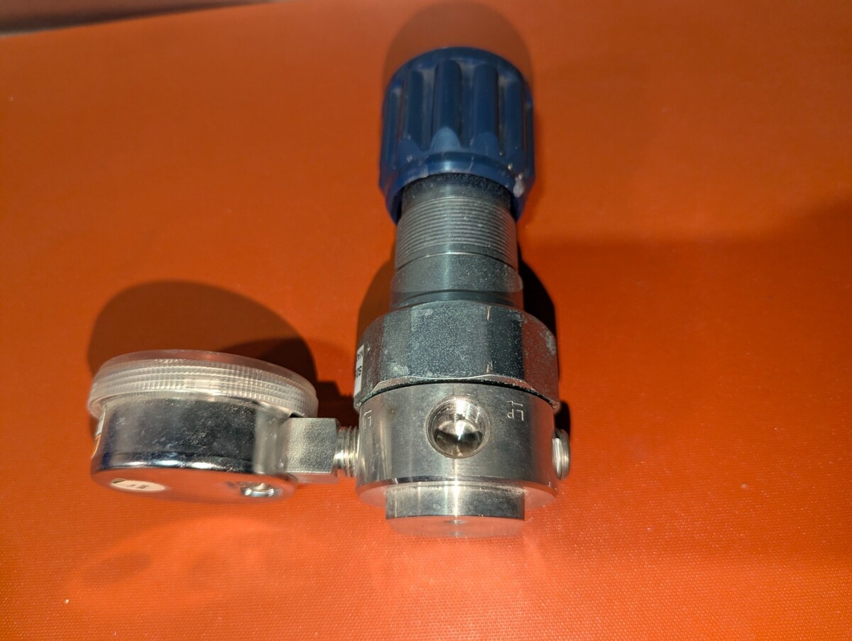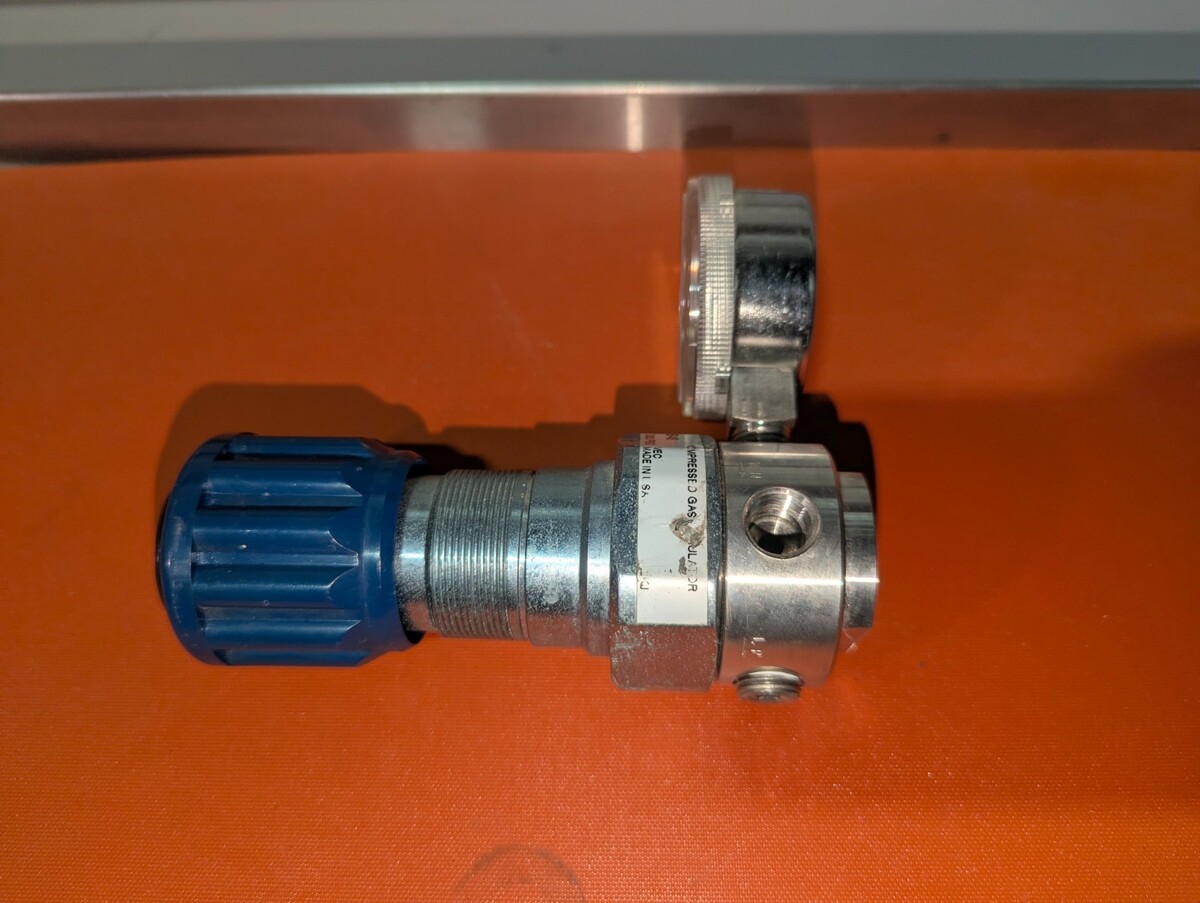 This Messer S250S-1-4S-4S Compressed Gas Regulator is in good condition and is guaranteed to be fully functional. This item came from a local lab that had surplus lightly used equipment. We urge customers to view all photos as they show overall condition, included accessories and useful information. Please feel free to contact us with any questions.