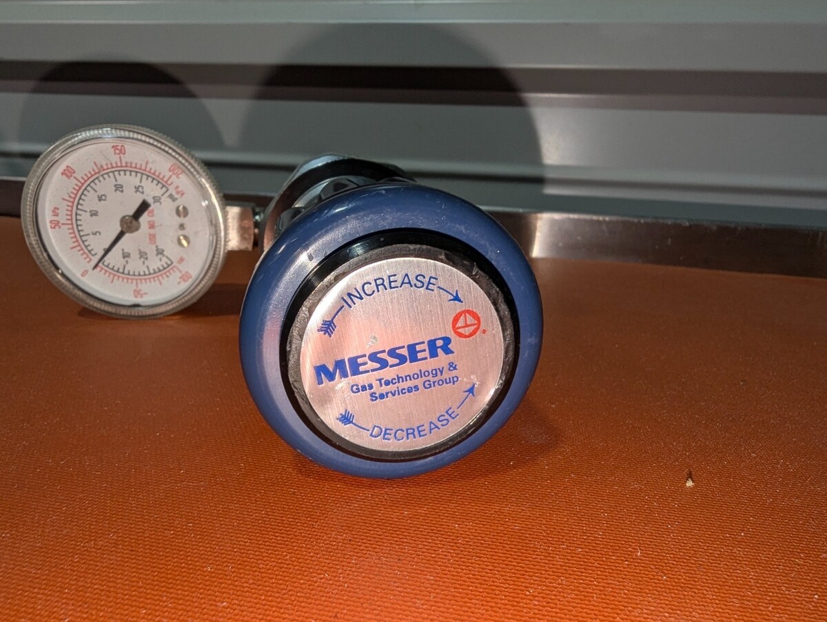 - Messer S250S-1-4S-4S Compressed Gas Regulator with -30 to 30 psi Gauge
