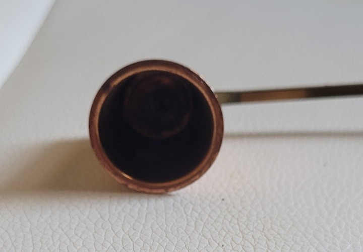 This candle snuffer is in good used condition. It measures approximately 11 inches long. It does have some candle residue on it. It would make a nice addition to a room or for decoration.