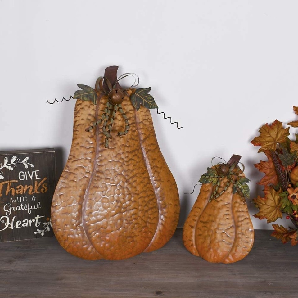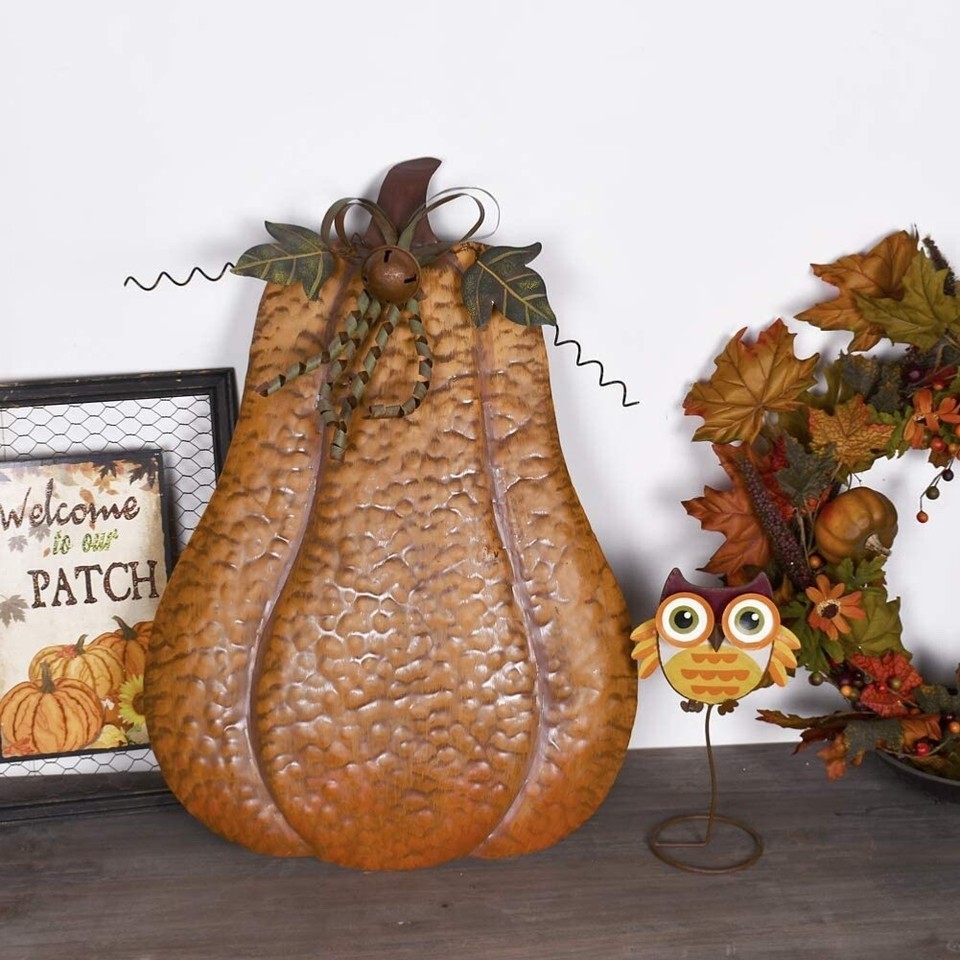 - Metal Fall Pumpkin Decor, Indoor Outdoor Standing Flat Pumpkin Decoration Autumn