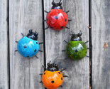 Set of 4 assorted color ladybugs metal garden wall art decor,