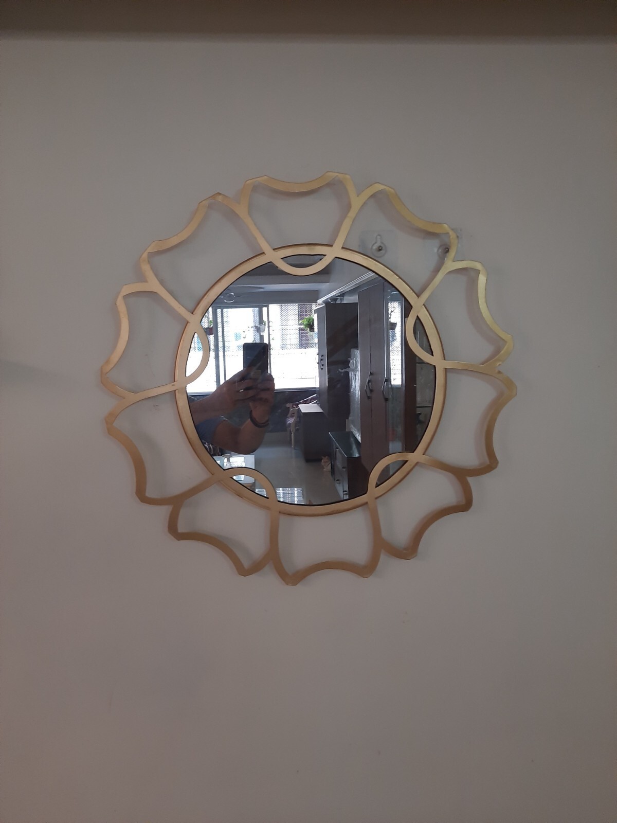 Metal Gold Carved Vintage Large Handmade Round Wall Art Mirror Bed Room