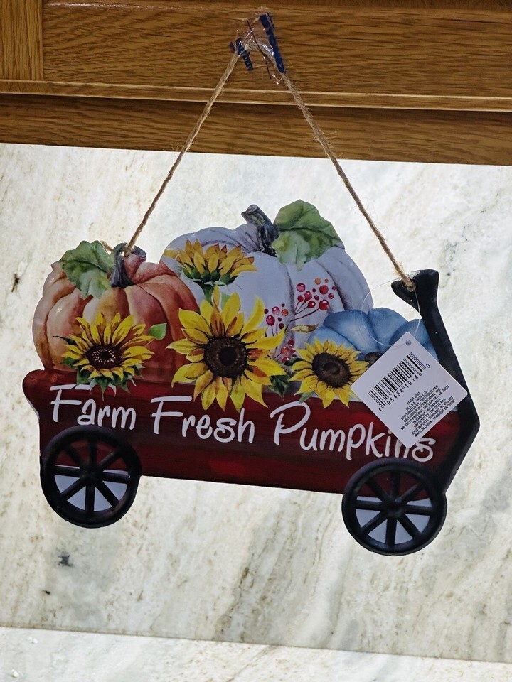- Metal Hanging Plaque Farm Fresh Pumpkins 9 Tall