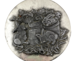 - Metzke Cookie Tin Vintage Pewter Embossed Bunny Rabbits in a Garden 6 in Dia.