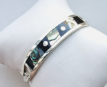 - MEXICAN 925 STERLING SILVER BLACK ONYX AND MOTHER OF PEARL BANGLE BRACELET 7"