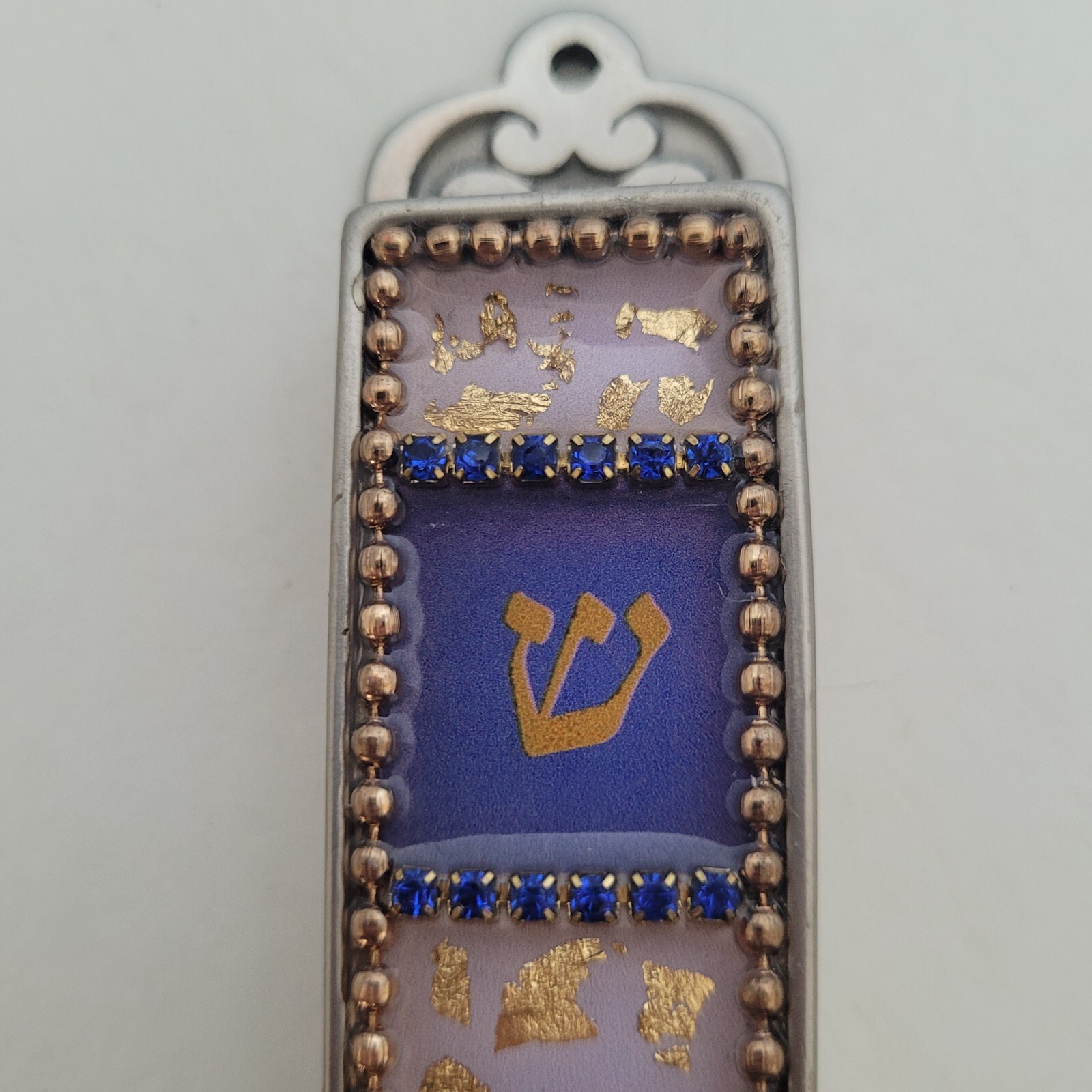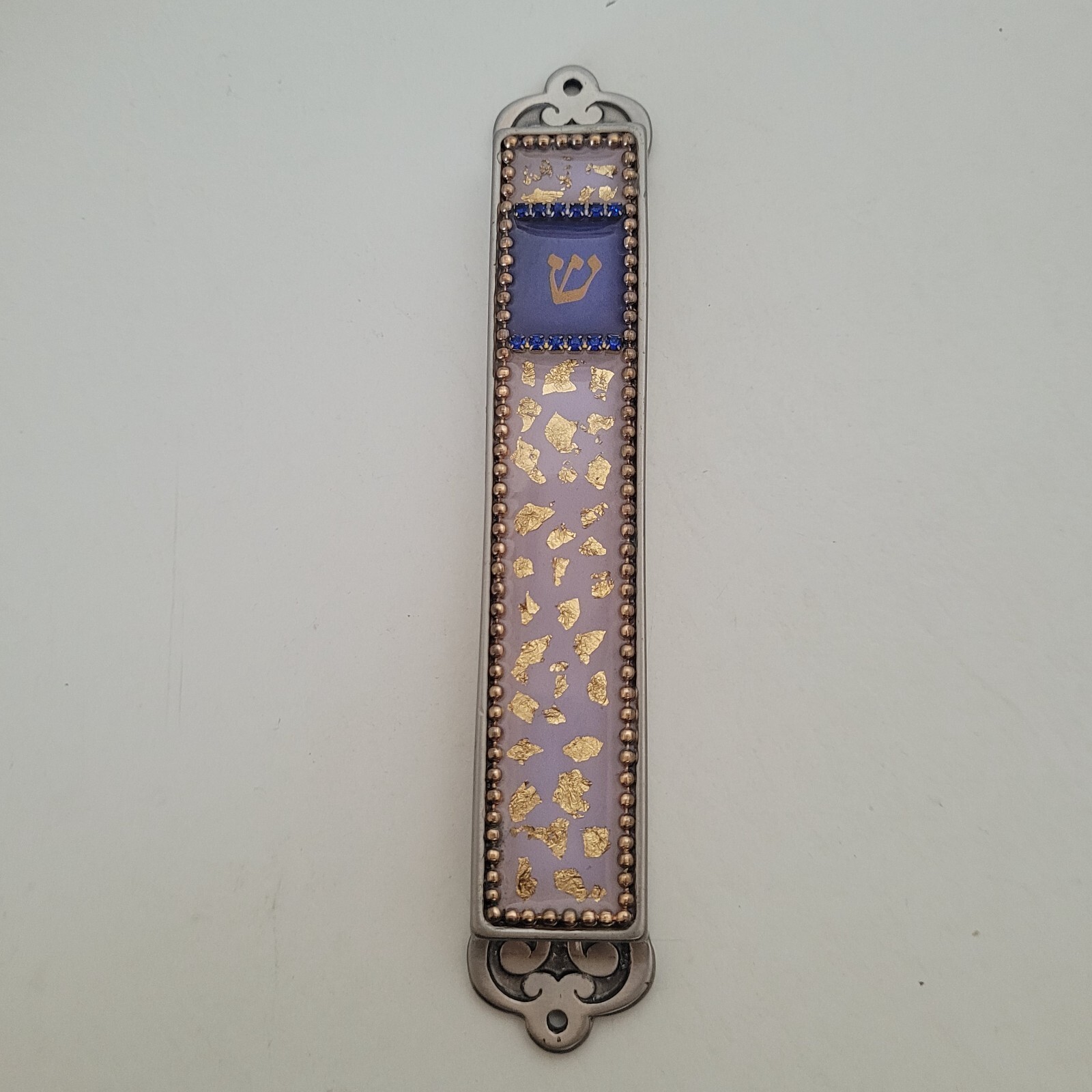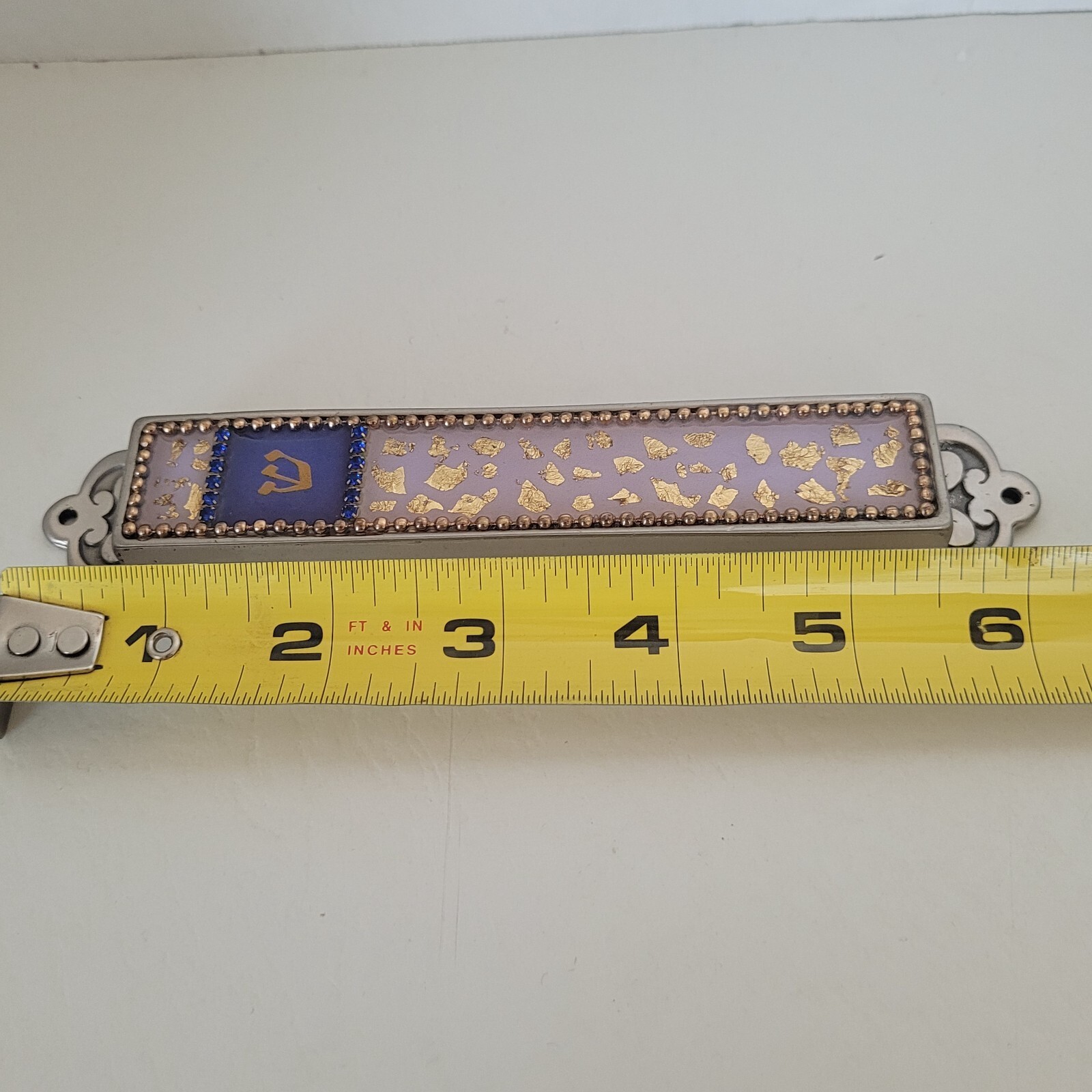 - Mezuzah 6.5 Inches Jewish Hebrew For Door Way Judaica Pewter Color & Gold Design