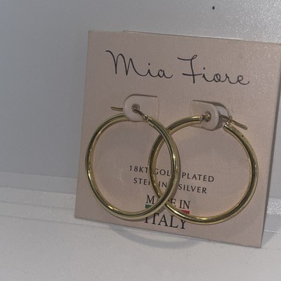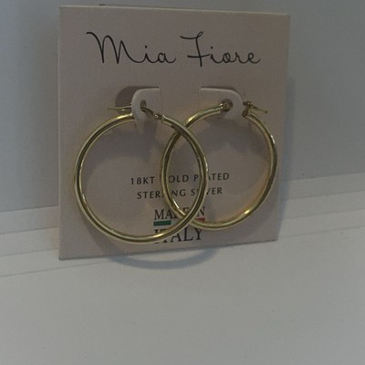 - Mia Fiore 18KT GOLD PLATED STERLING SILVER Hoop Earrings 1.5" NEW MADE IN ITALY