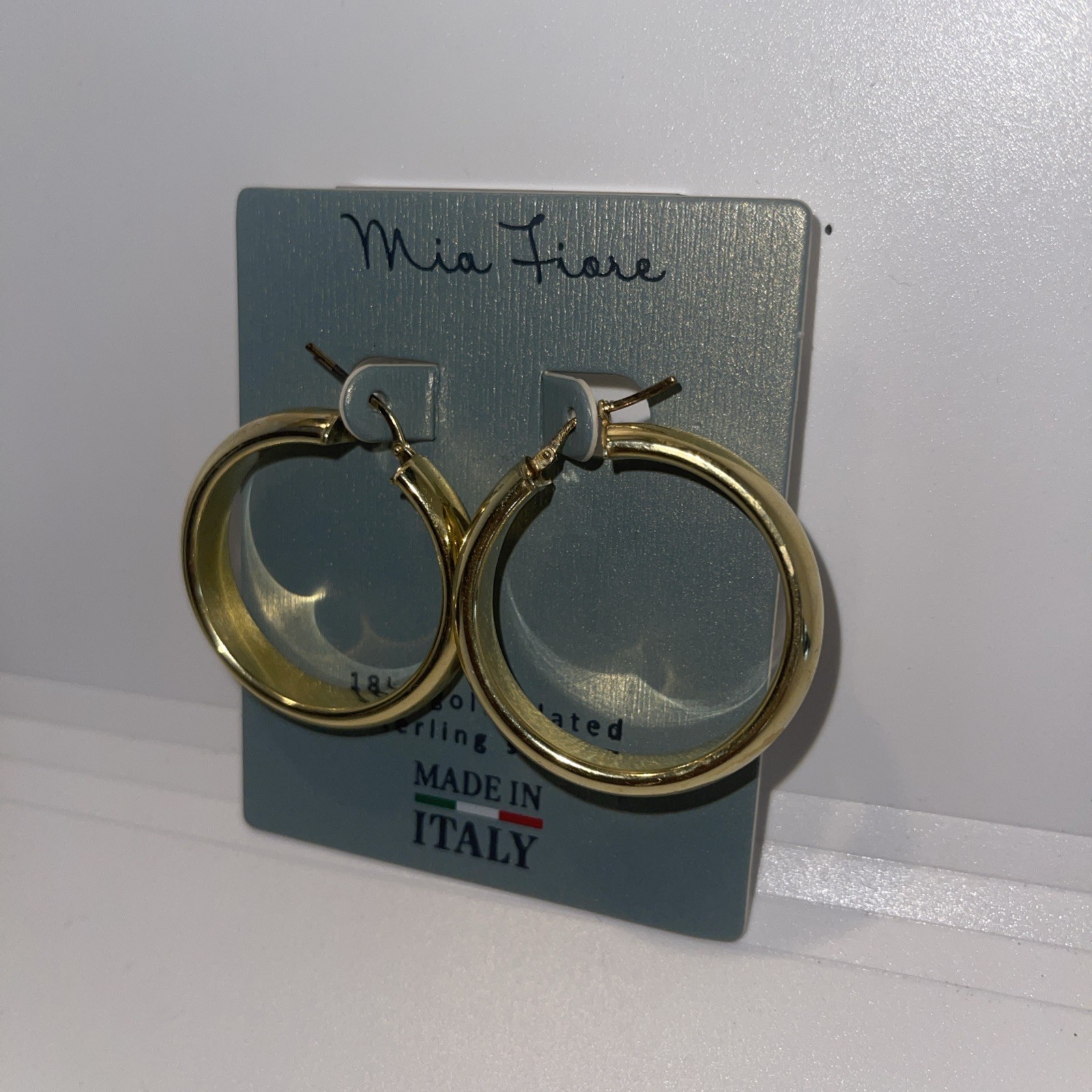 Mia Fiore 18KT GOLD PLATED STERLING SILVER Hoop Earrings 1.5" NEW MADE IN ITALY
