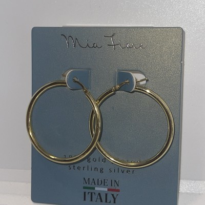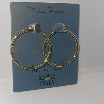 - Mia Fiore MADE IN ITALY 18KT GOLD PLATED SS Hoop Earrings 1.5" NEW