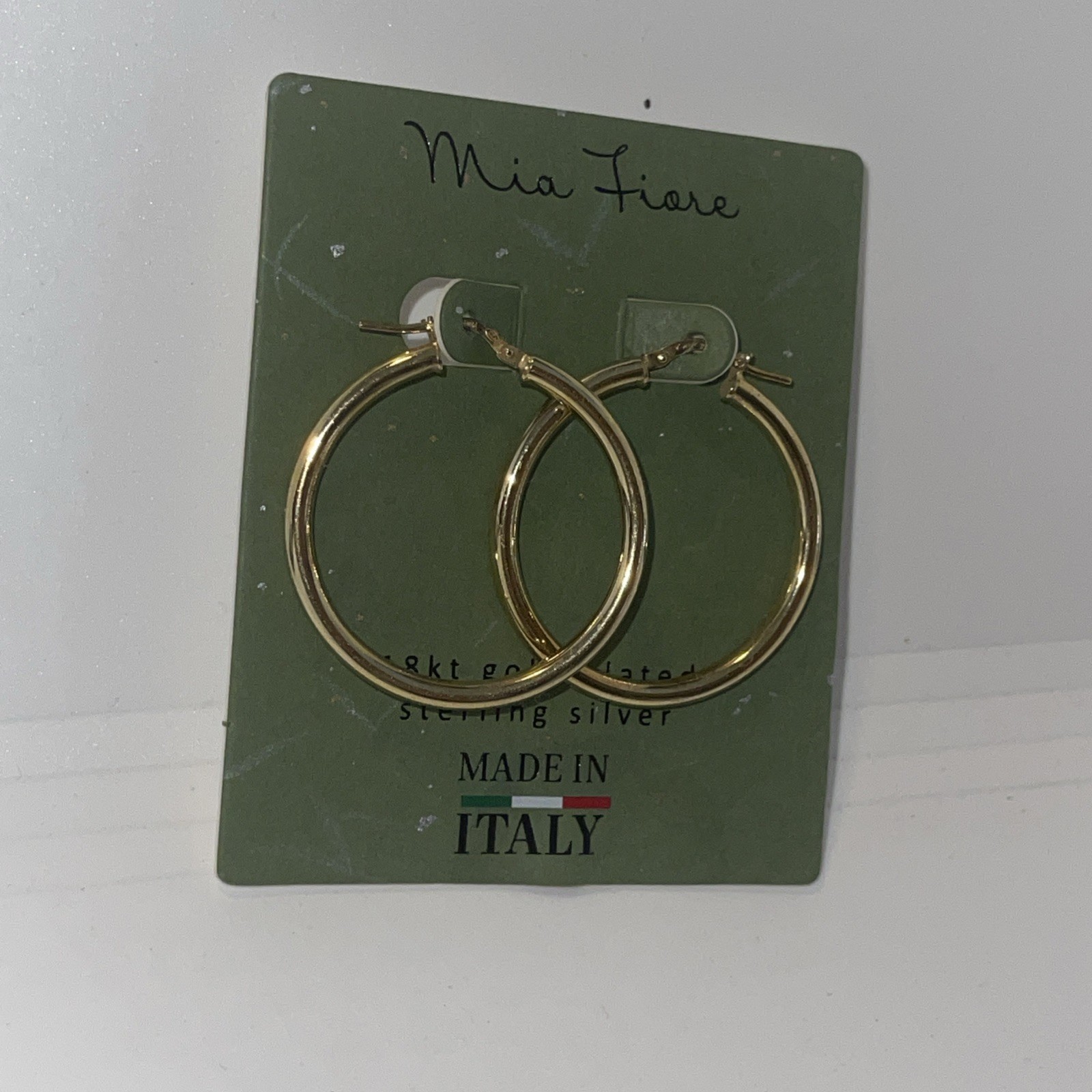 - Mia Fiore MADE IN ITALY 18KT GOLD PLATED STERLING SILVER Hoop Earrings 1.5" NEW