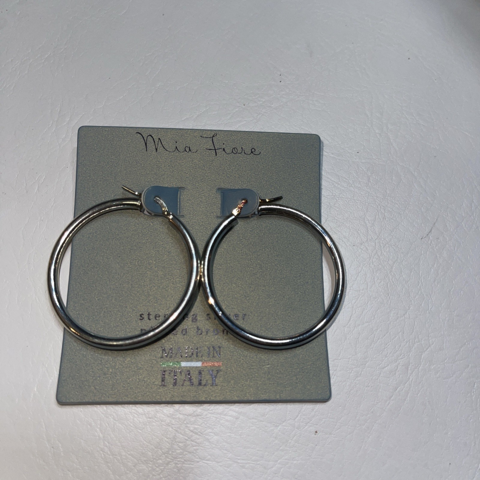 - Mia Fiore MADE IN ITALY STERLING SILVER plated bronze Hoop Earrings 1.5" NEW