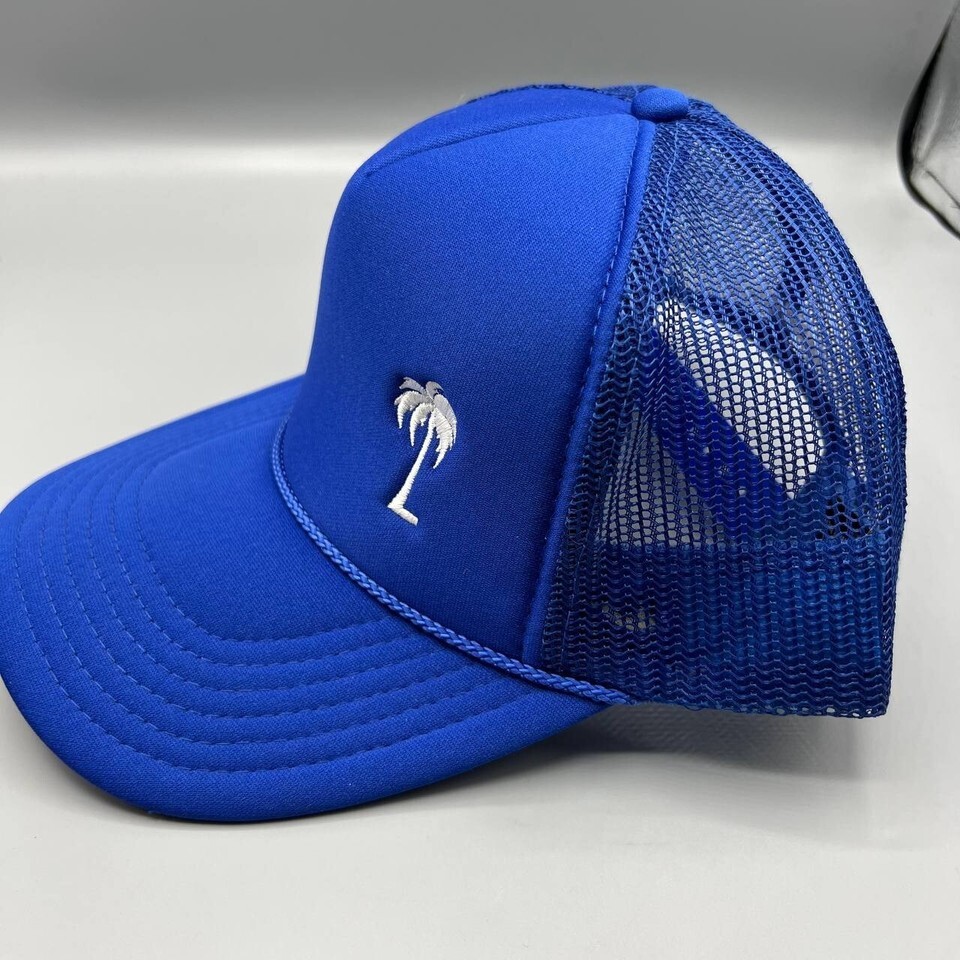 - Miami Beach Trucker Hat Men Blue Palm Tree Otto Snap Back Cap