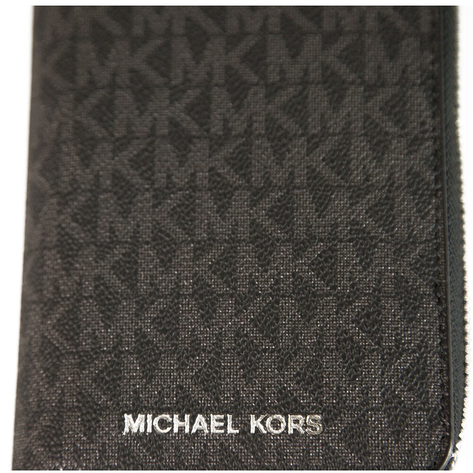 Michael Kors - Cooper Black Logo Canvas Zip Around Smartphone Wallet , New
