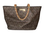 - Michael Kors Handbag Brown Signature Harper Large Tote Logo Gold Chain East West