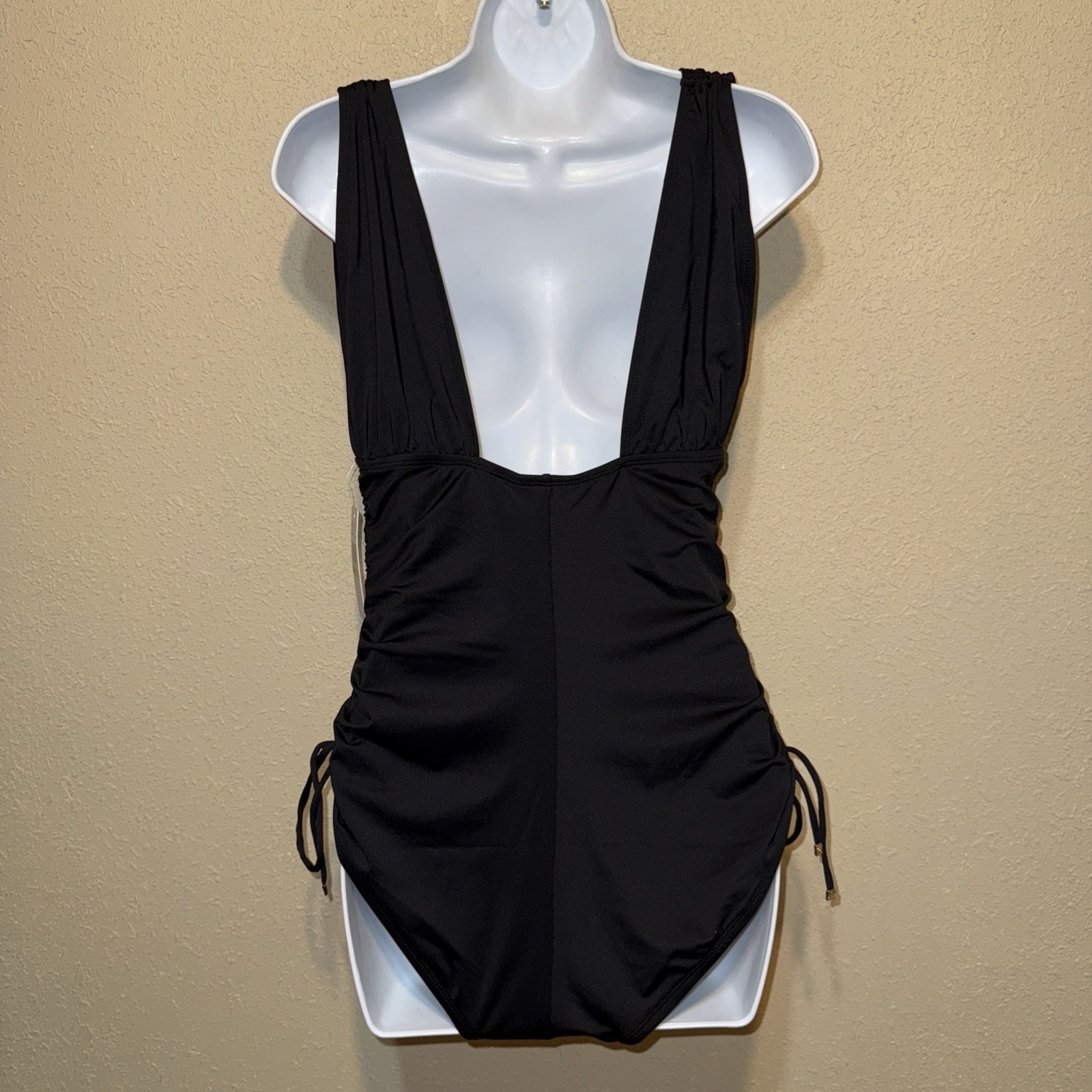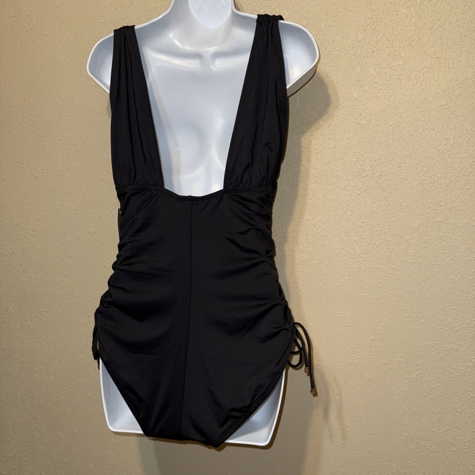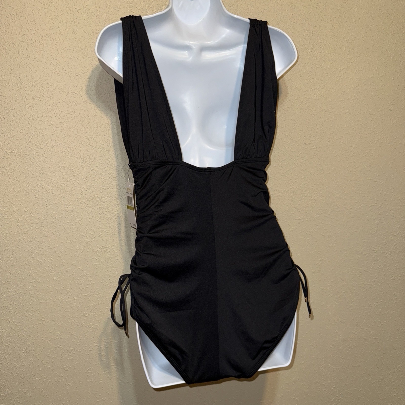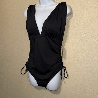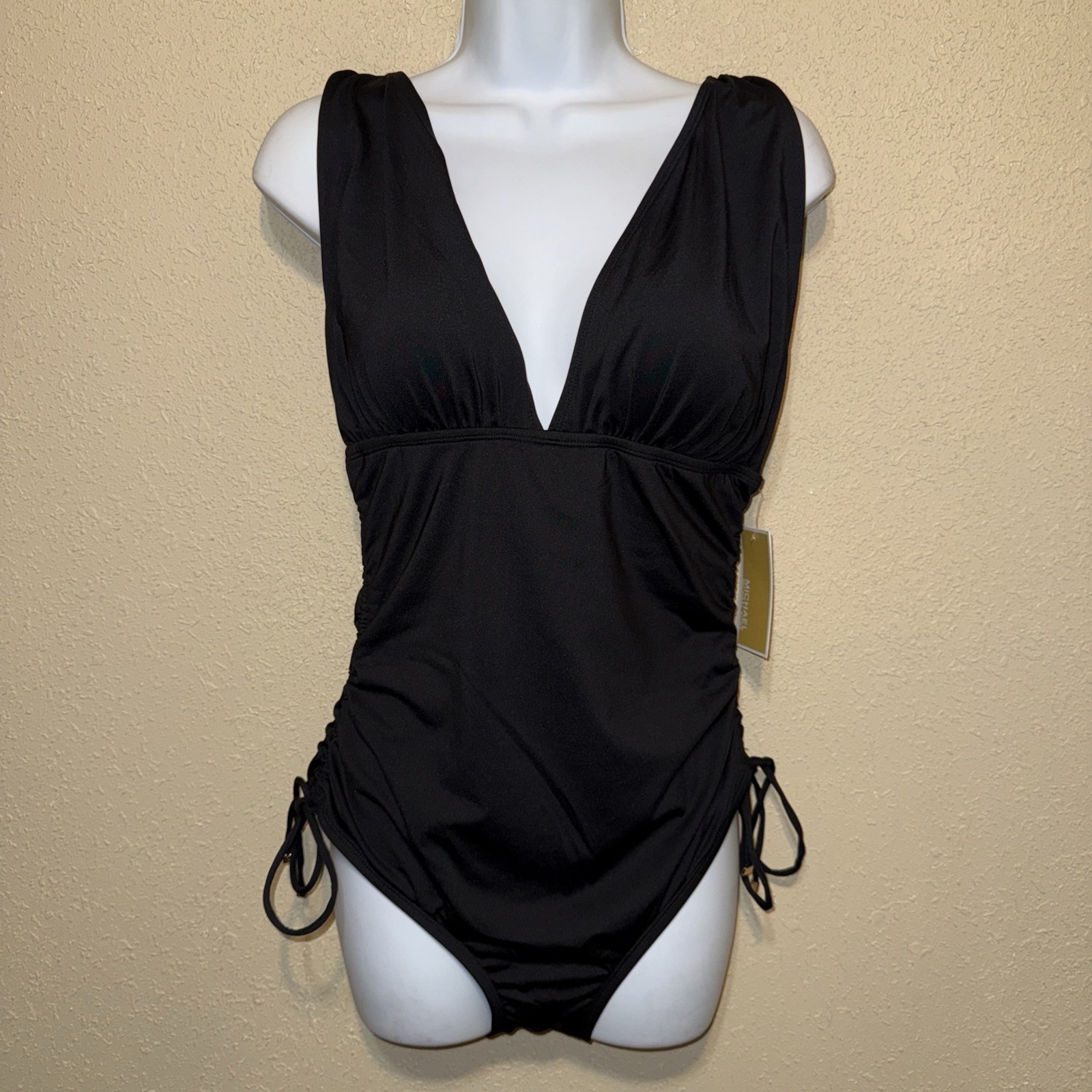 - Michael Kors Ruched One-Piece side drawstrings Swimsuit sz 14