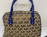 - Michael Kors Signature Dome Satchel Purse With Blue Handles/Cross Body Strap+ DB