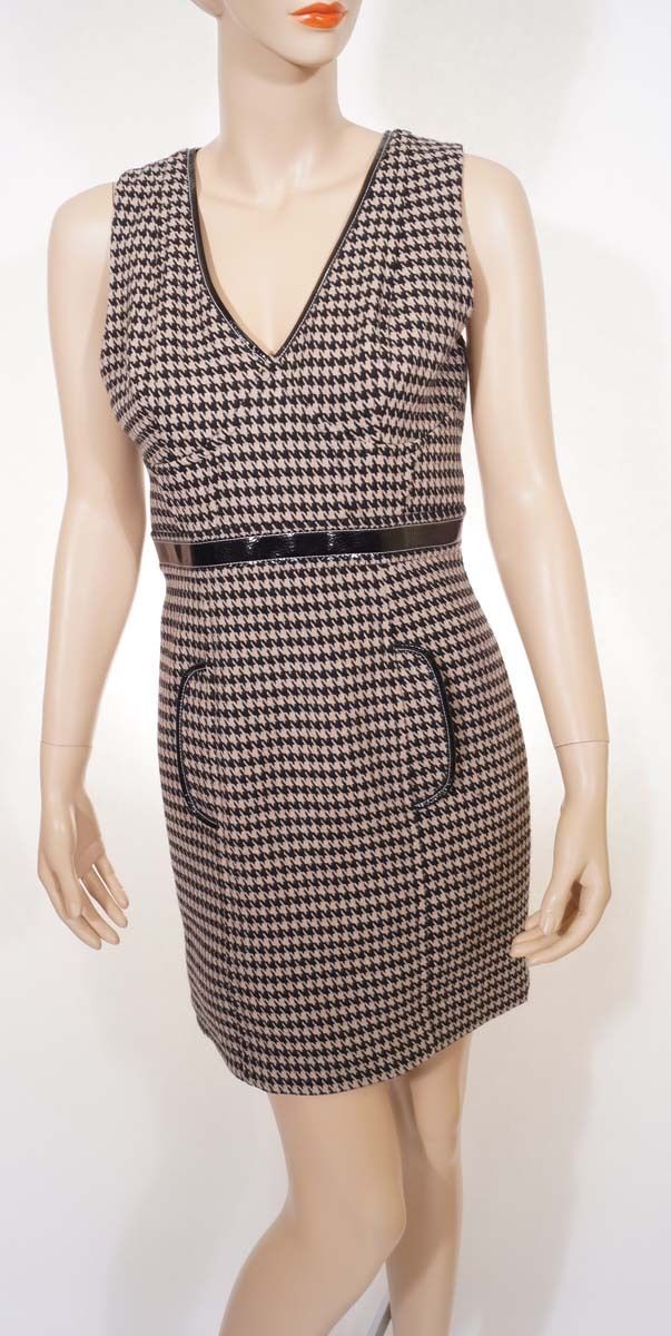 - Michael Kors Womens Black Beige Wool Houndstooth Lined V Neck Above Knee Dress 8