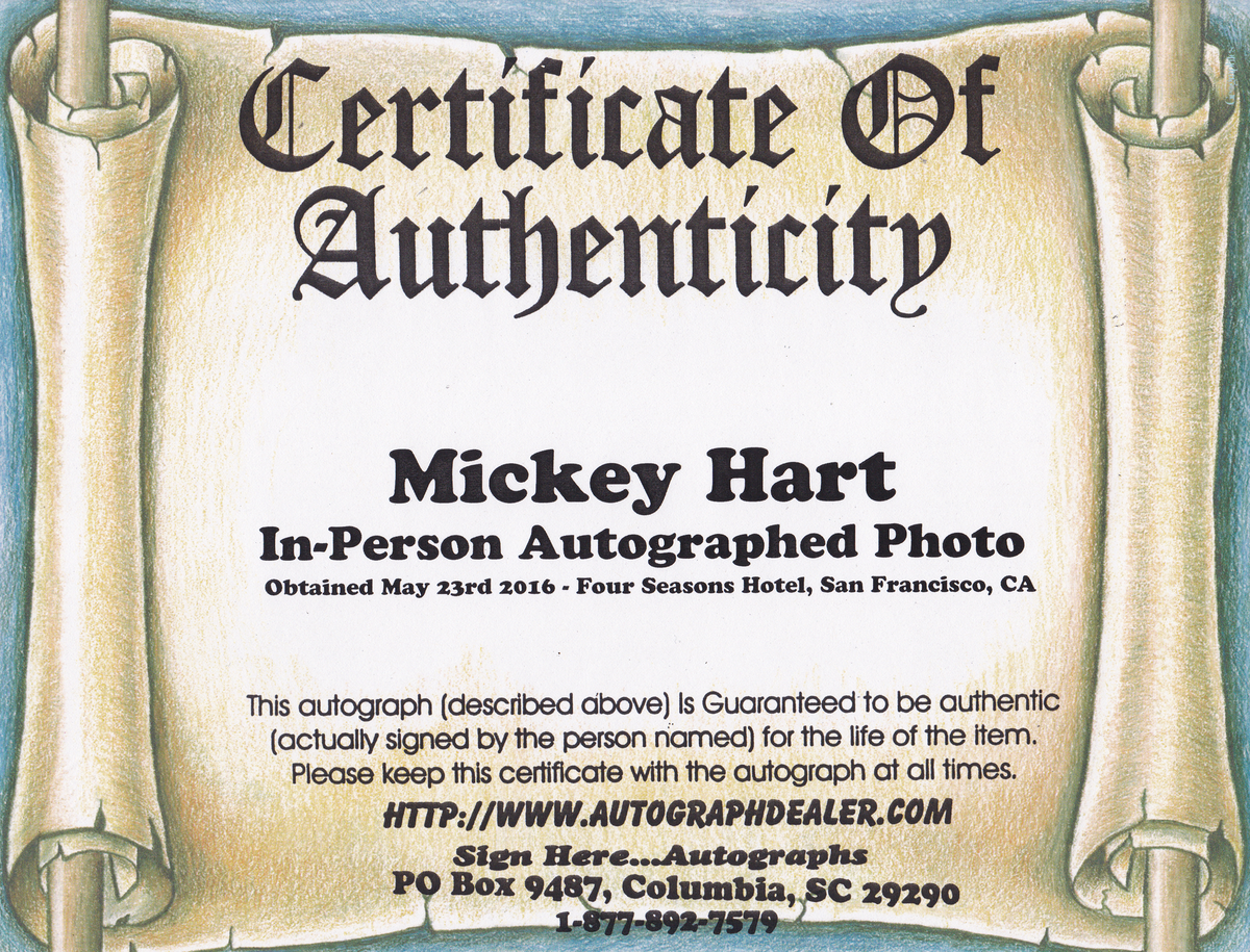 - Mickey Hart Grateful Dead Authentic In-Person autographed 8x10 photo with COA