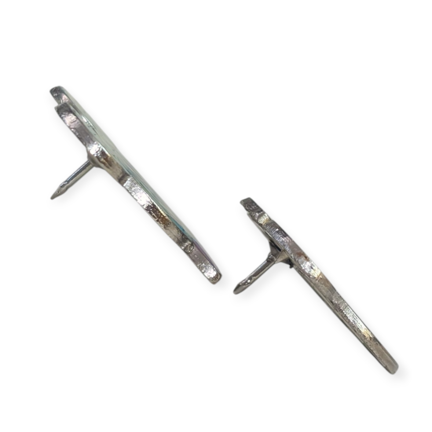• Sculpted metal with enamel, and finished with rubber backs to keep secure.