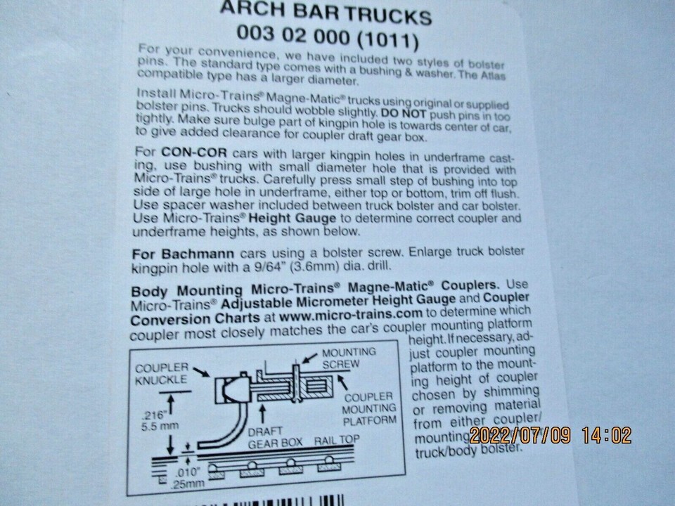 - Micro-Trains # 00302000 (1011) Arch Bar Trucks without Couplers. 1 Pair. N-Scale
