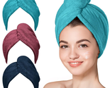 Microfiber Hair Towel, Hair Towel Wrap Turbans for Women,Hair Drying Towel Wrap Hair Accessories for Women Girls-Plum,Navy,Aqua Green,3Packs