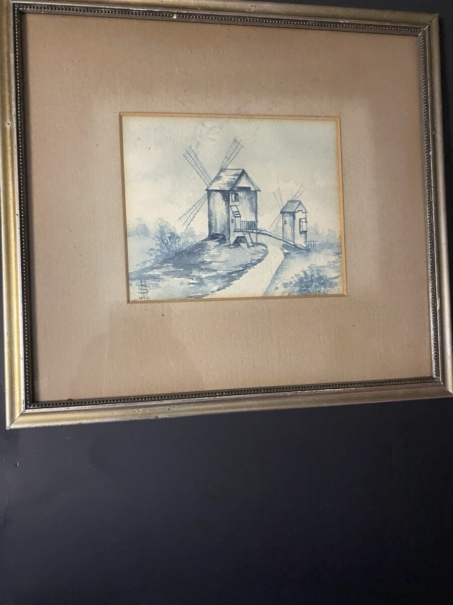 - Mid 20th Century Water Vintage Watercolours Painting Titled The Mills