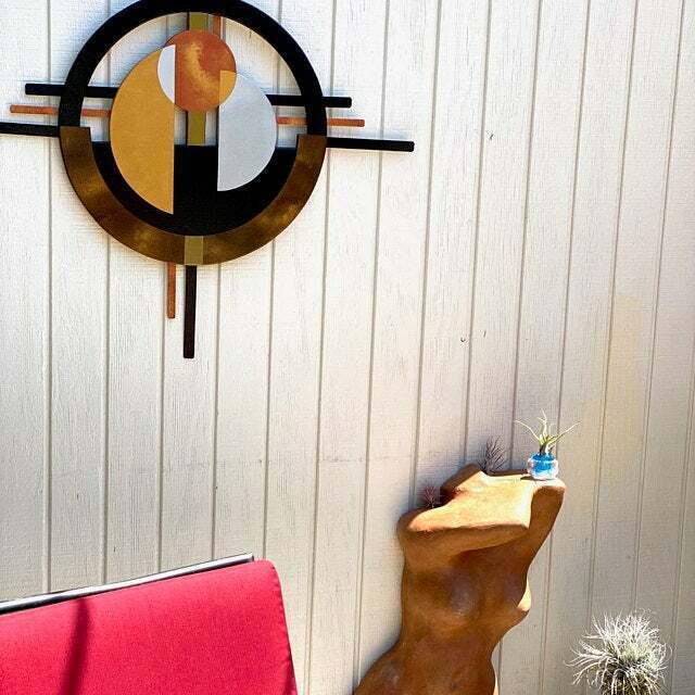 Contemporary Mid Century Circle Wood and Metal wall decor Wall Sculpture