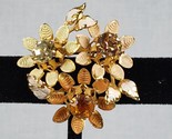 - Mid Century Enamel Amber Blue Purple Rhinestone Gold Tone Floral Bouquet Brooch