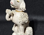 Fabulous mid-century ceramic poodle figurine featuring classic spaghetti detailing and a soft gray glaze. This sculpted beauty captures the whimsical charm of 1950s?60s decorative ceramics and would be right at home in any retro or kitsch collection.