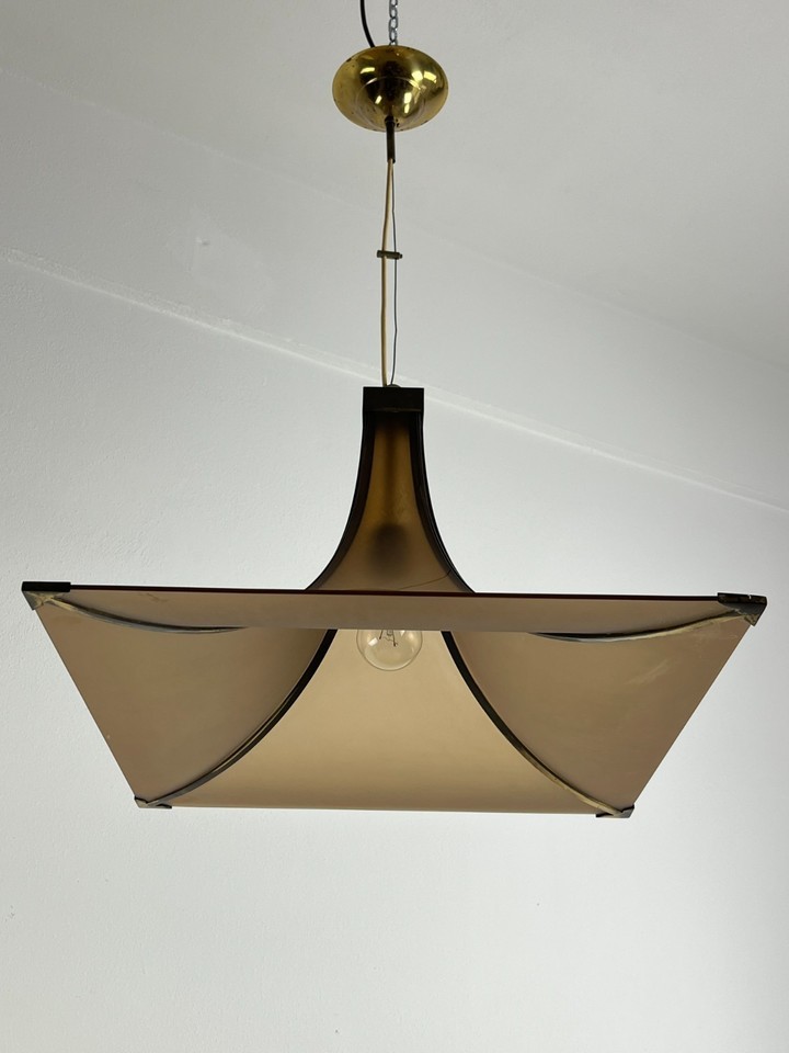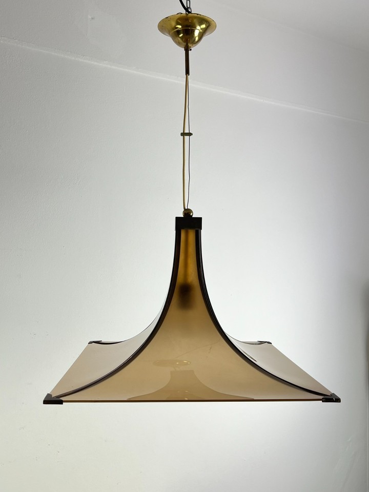 Lampadario Mid-Century in plexiglass e ottone di design italiano anni '60.