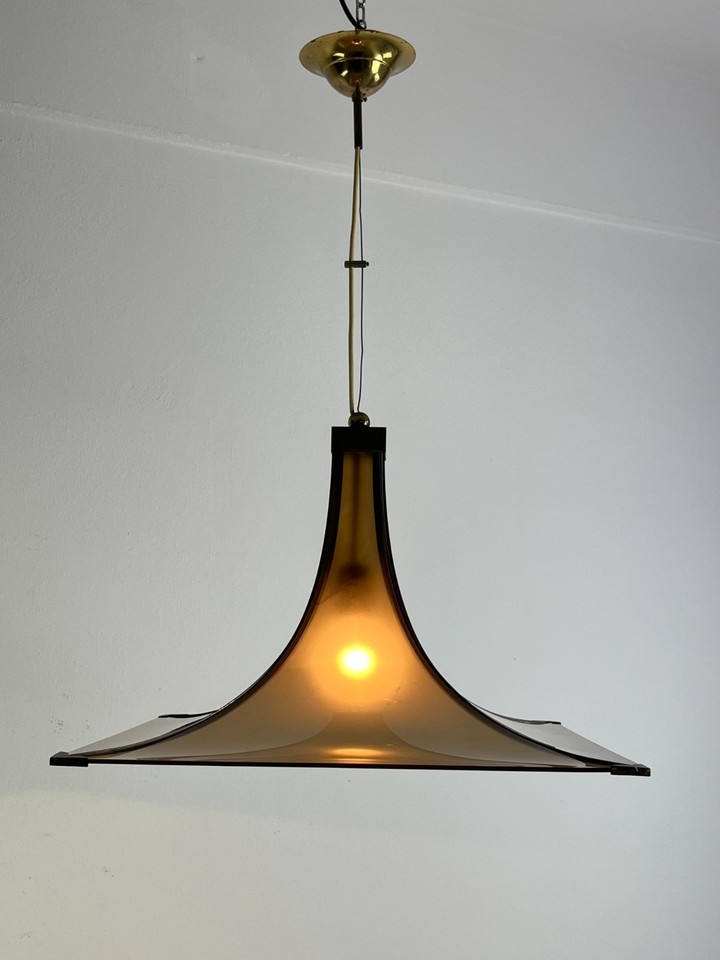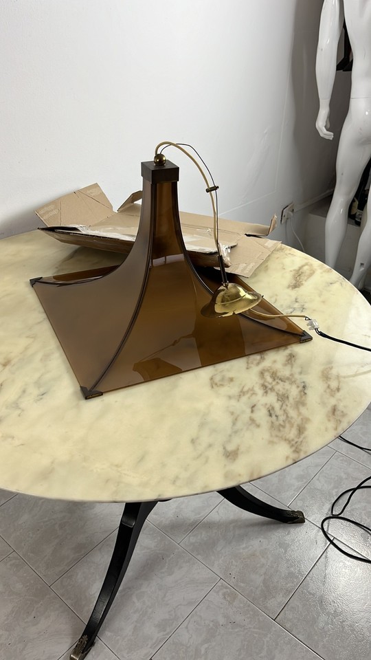 Mid-Century Italian Design Brass and Plexiglass Chandelier 1960s- show origin...