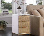 Elegant Gold Metal Accents: Elevate the nightstand?s charm with gold metal feet and handles. These luxurious accents create a striking contrast against the white and natural finishes, adding a touch of glamour and sophistication. The gold details not only enhance the visual appeal but also ensure durability, making the piece both stylish and long-lasting.