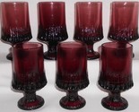 - MID CENTURY Set (7) SMITH Glass SCULPTURA 2 PATTERN 6 oz Plum Color WINE STEMS