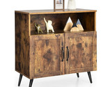 - Mid-century Wooden Storage Cabinet Wine Glass Holders-Rustic Brown - Color: Rust