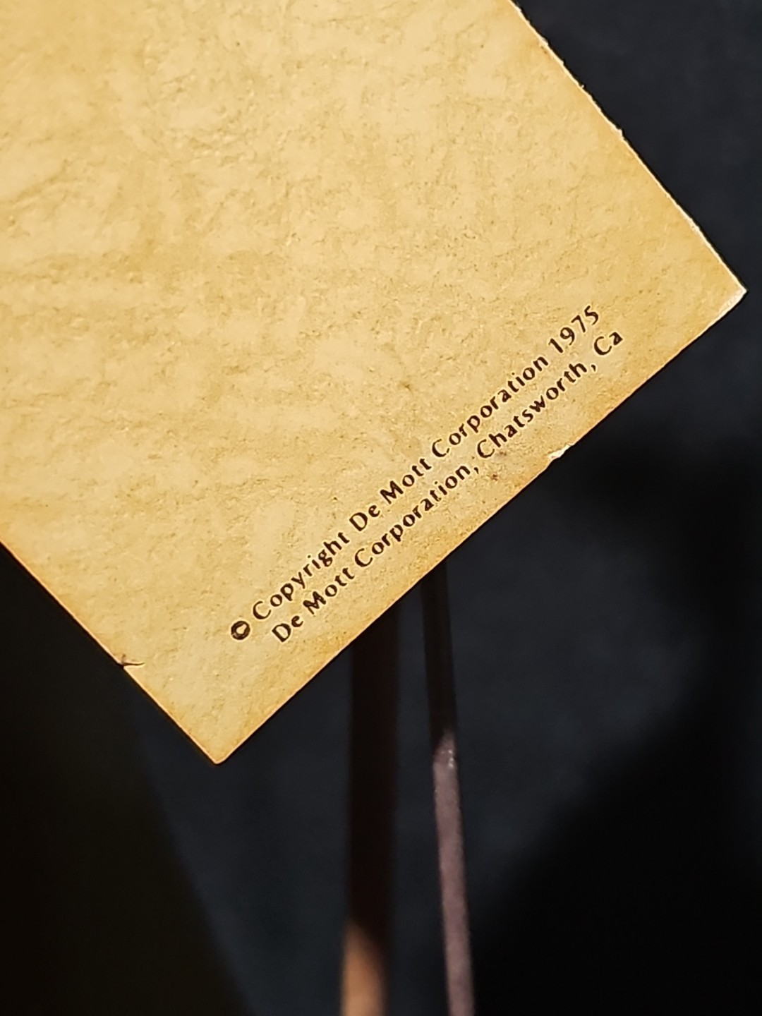 This signed De Mott sculpture is in perfect vintage condition and still has its original tag. Beautiful age appropriate patina makes this a fine example of the De Mott style.