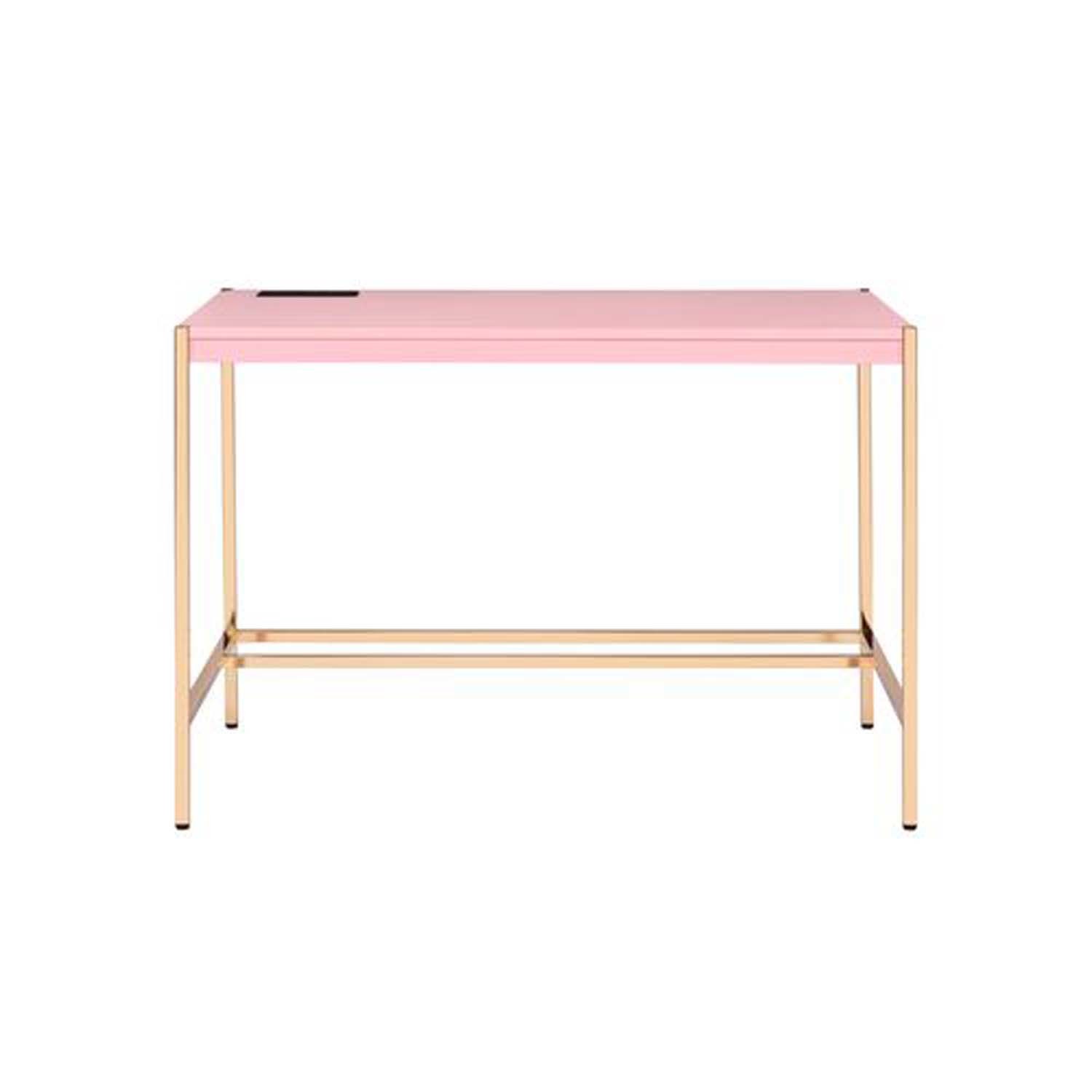 Midriaks Writing Desk w/USB, Pink & Gold Finish