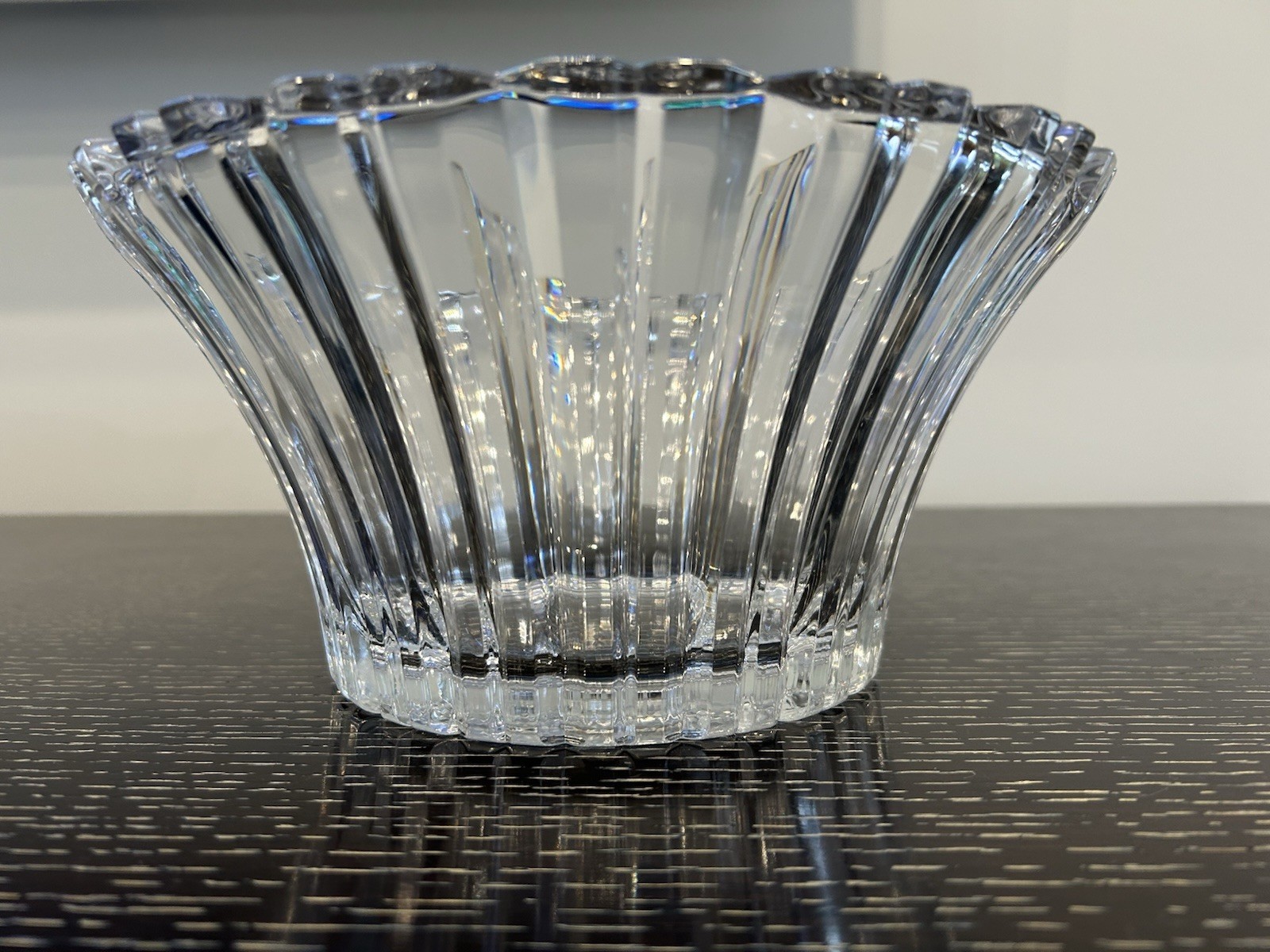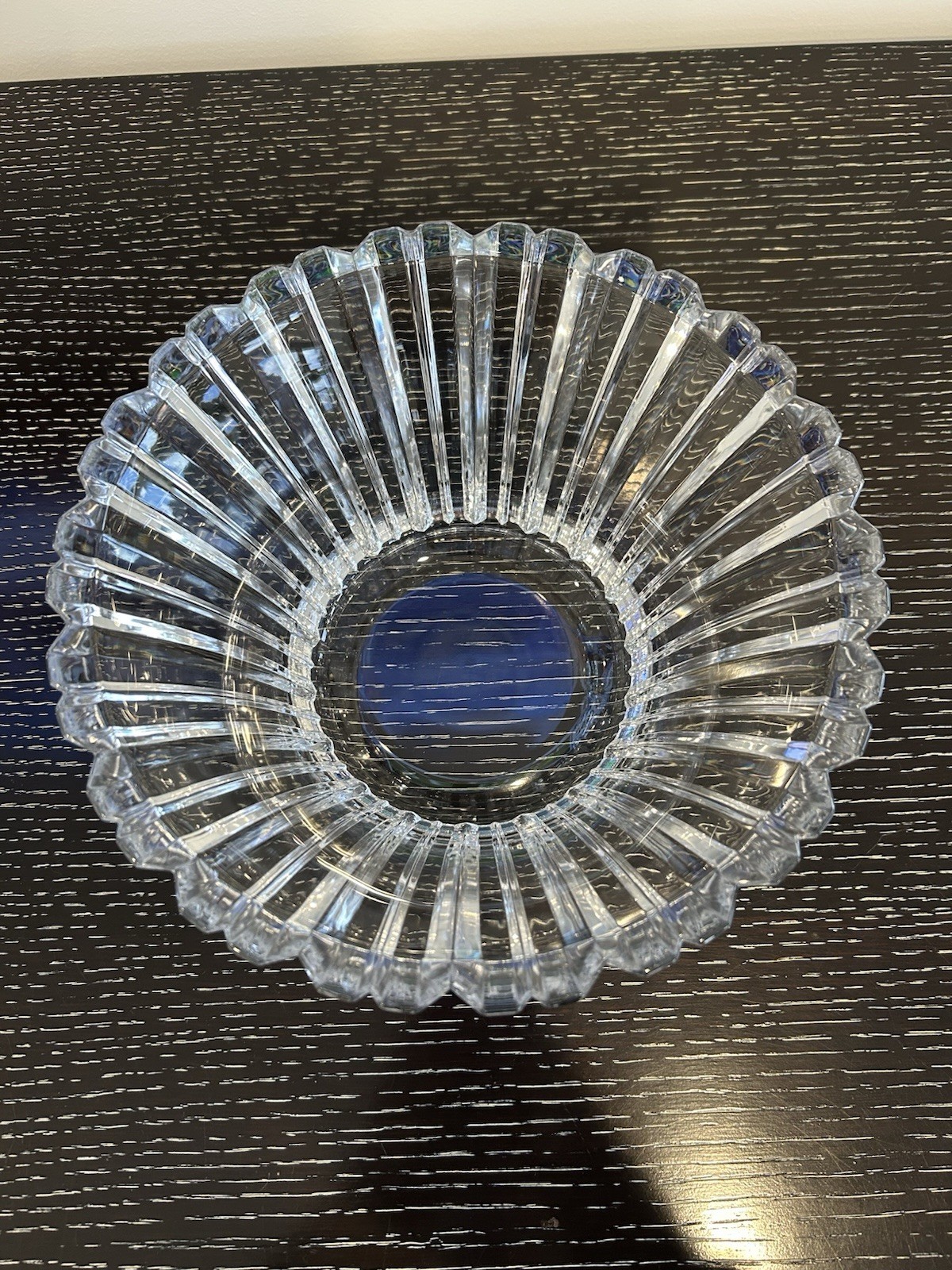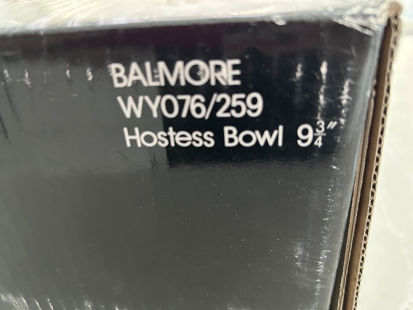 The Mikasa Balmoral Serving Bowl is a 9" glass bowl that comes in its original box. This stylish and elegant bowl is perfect for serving salads, side dishes, or even as a centerpiece on your dining table. Made of high-quality glass, this bowl is sturdy and durable, weighing approximately 5 pounds. The clear color adds a touch of sophistication to any table setting, making it a versatile piece for any occasion.