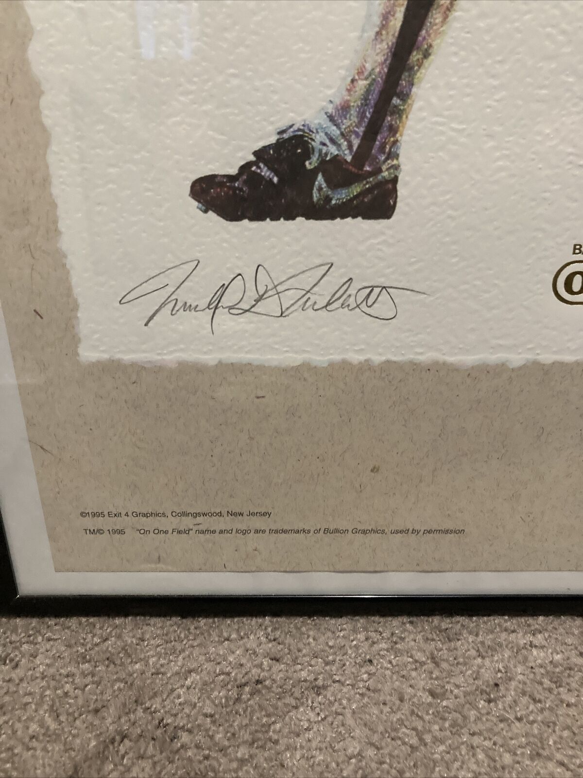 Mike Schmidt Autographed Lithograph. This lithograph by Michael Mellett is 20" X 24" and is limited to 1,000 and is part of the "On One Field" collection. Lithograph is signed by the artist as well as Mike numbered and remarqued by Michael Mellett, it also includes gold foil "On One Field" logo.
