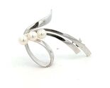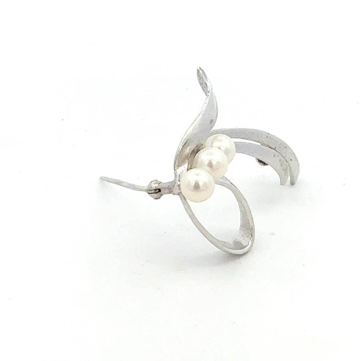 This elegant Authentic Mikimoto Estate sterling silver brooch has 3 Saltwater Akoya Cultured Pearls in size of 5.45 mm.