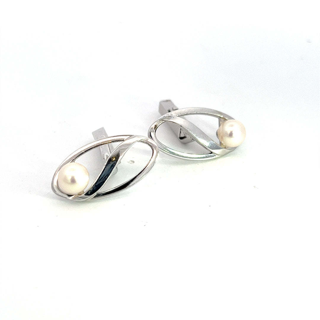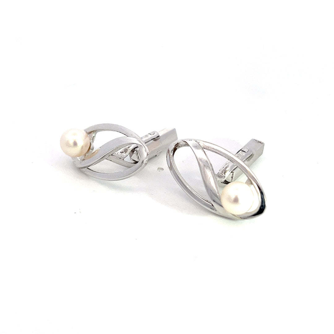 - Mikimoto Estate Akoya Pearl Mens Cufflinks Sterling Silver 6.7 mm M392