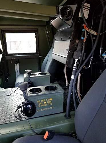 This includes 1 center console so you can hold 2 soda can sized beverages total at one time. Great not just as a cup holder, but also as Storage in your truck. Includes 2 total cup holders. COMMO GEAR NOT INCLUDED. The dimensions of each can is 12x7x5 1/2. The ammo cans used are authentic, military ammo cans that have had field use and are un-refurbished, meaning they have have dents, dings, rust, scratches and any number of imperfections. This product is designed to be installed in a military vehicle (hardware not included). This standard size cupholder is for holding soda cans and is not large enough to hold water bottles.