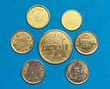 This is a collection of 7 military trade tokens from Military Bases Japan. These tokens were used in the officers club and were a popular form of currency among members. They feature various designs and denominations, and are a unique addition to any collection of coins and paper money. The tokens were manufactured in Japan and are uncertified. Add these tokens to your collection of exonumia today!
