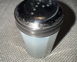 This vintage style pepper shaker features a white glass body with a metal lid, measuring 3x2 inches. Perfect for adding a touch of charm to any kitchen or dining table, this set includes only the pepper shaker component. Ideal for seasoning dishes with pepper, this unique and collectible item is sure to be a conversation starter in any kitchen setting.