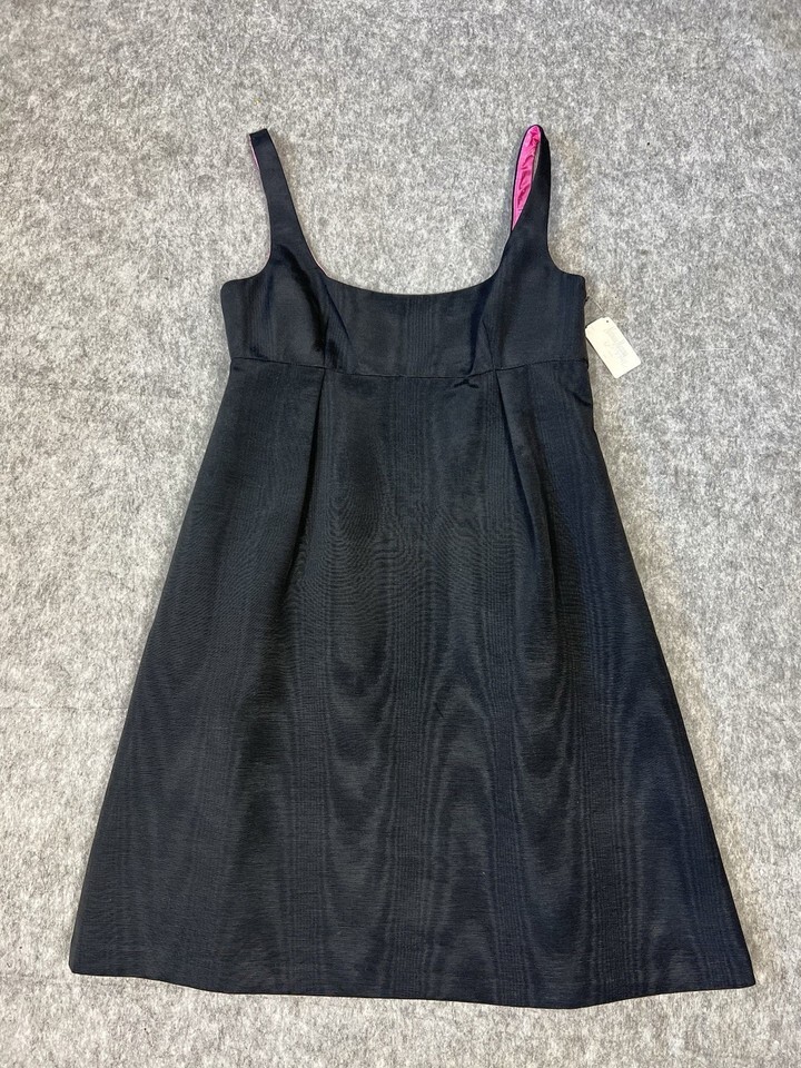 Milly black dress, Milly New York size 4, black pink lining dress, A-line cocktail dress, Neiman Marcus Milly, sleeveless party dress, USA made designer dress, women?s formal black dress, Milly satin lined, chic classic cocktail outfit