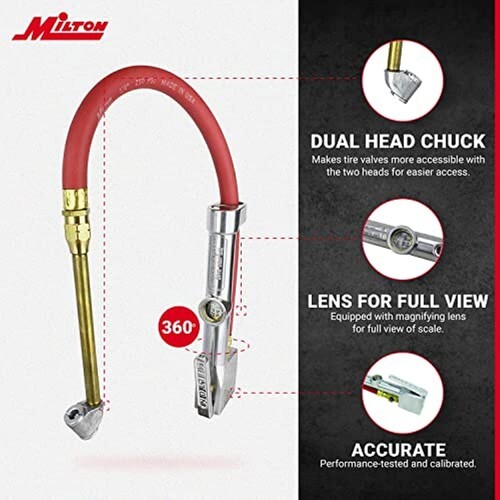 - Milton S-506 Original Analog Tire Inflator with Pressure Gauge, 15" Hose Dual