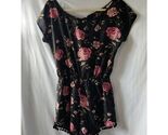 Mimi Chica Floral Elastic Waist Romper Short Sleeve Black Womens Size Medium