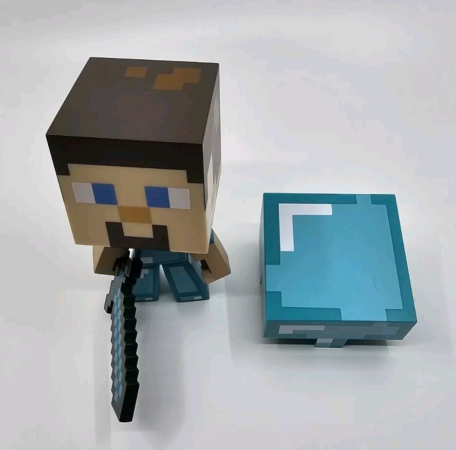 - Minecraft Steve 6”Vinyl Video Game Action Figure Toy Diamond Armor & Sword Notch