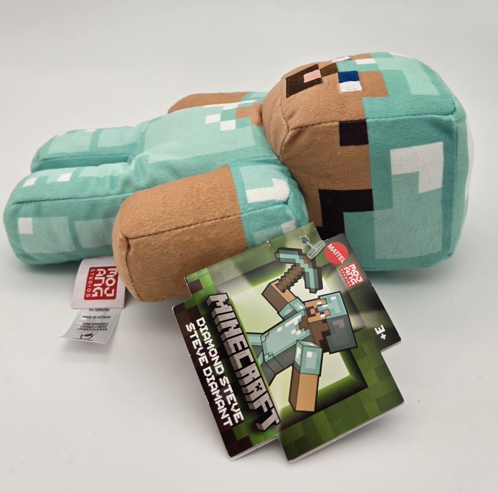 New with Tags - Enhance your Minecraft collection with this brand new Mattel Steve plush in full diamond armor still tagged and sealed in original packaging NWT. Standing approximately 9 inches tall this pixel perfect collectible figure captures Steve in his iconic Diamond Armor ideal for gaming fans collectors and children aged 3 plus. Soft durable and true to the Minecraft aesthetic this plush features high quality embroidered facial details stitched armor blocks and official Mojang and Mattel branding on the tag. Designed to resemble the in game character exactly this plush is lightweight easy to display and great for imaginative play or shelf decoration.